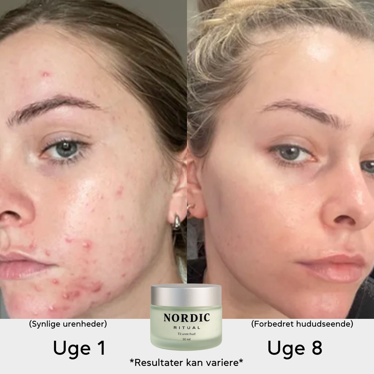 Vi er sikre på, at du vil elske Lysa Akne. Derfor tilbyder vi en 60 dages risikofri prøveperiode. Hvis du ikke er tilfreds med dine resultater, skal du blot kontakte vores kundeservice på info@nordicritual.dk for at få alle dine penge tilbage – helt uden spørgsmål. Oplev forvandlingen uden risiko.